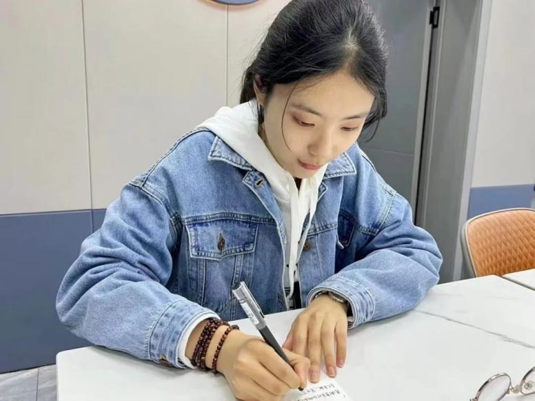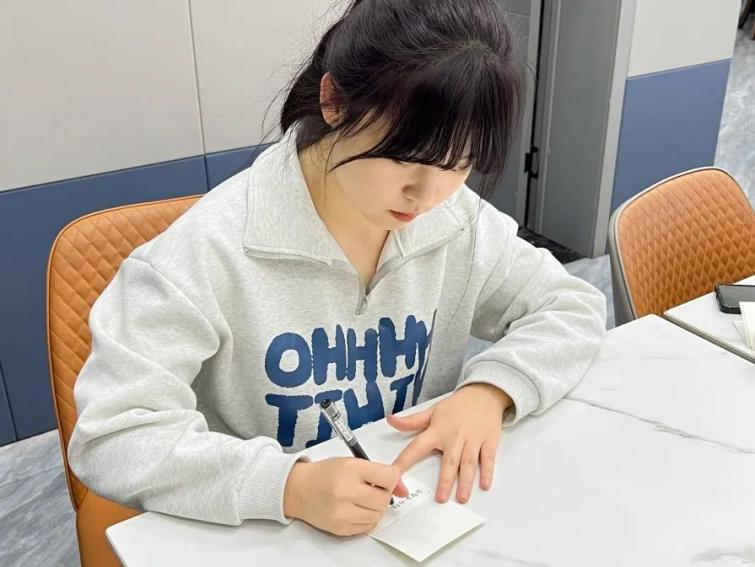 同学们在纸上写祝福语