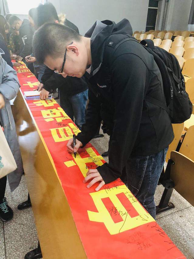 学生干部在课前向学生分发倡议书,本院学生人手一份,认真学习并进行总结。课后摆设宣传条幅,向同学们倡导:拒绝迟到早退,抵制课堂上玩手机,争做文明研究生,共同维护课堂秩序。同学们热情响应,并且积极完成签名。