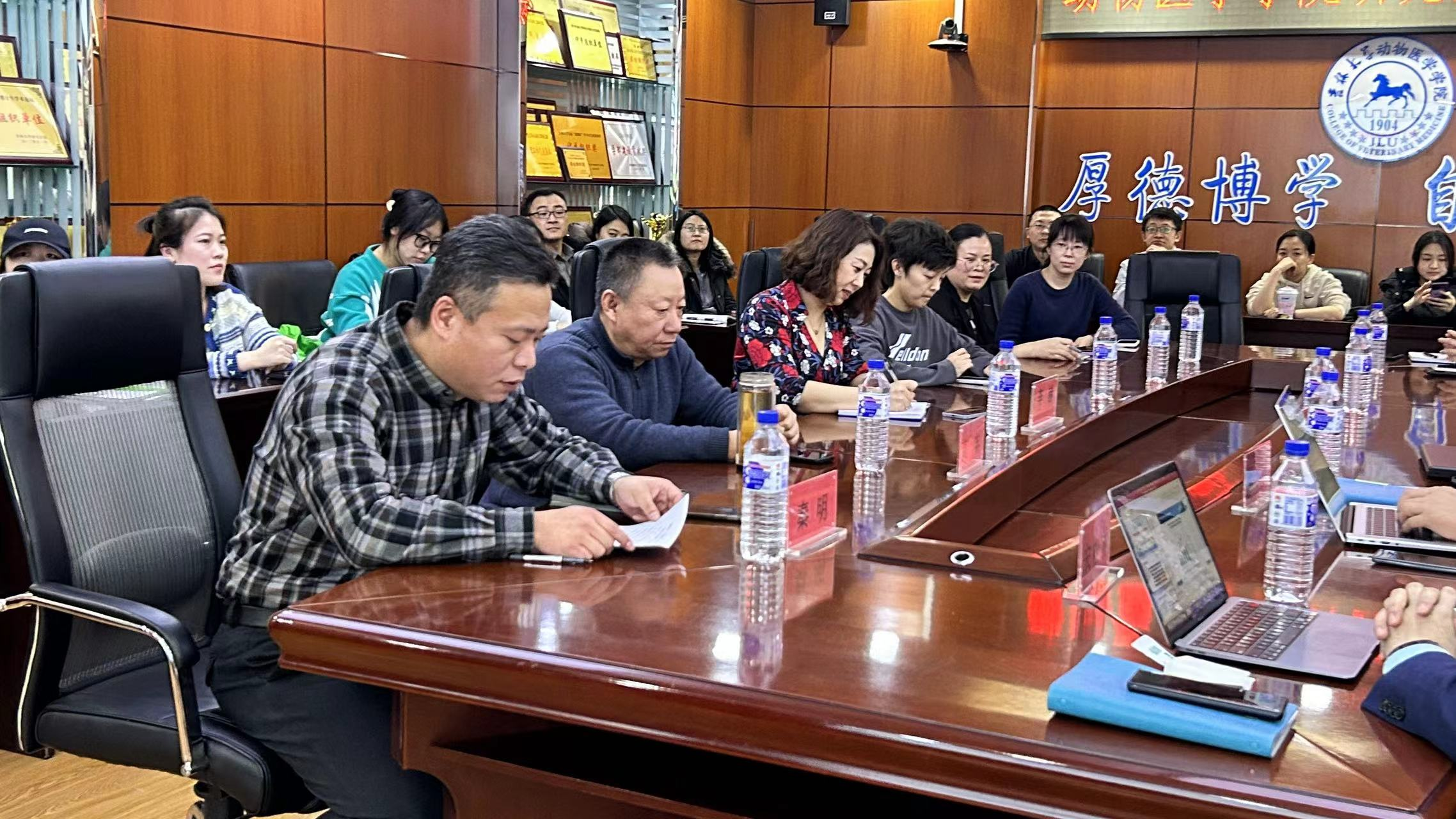 会议伊始,宋松林董事首先从公司规模布局、已有的专利、研究成果等方面对吉林正业生物制品股份有限公司进行了一个简单的介绍。接着宋松林董事讲解了吉林正业专业学位研究生培养支撑条件,宋松林董事表示吉林正业生物制品股份有限公司具有先进的实验室,能够进行一些高端的试验,借助正业生物一流的实验室,可以给教师提供教学平台,为学生提供试验平台,同时也感谢包你发