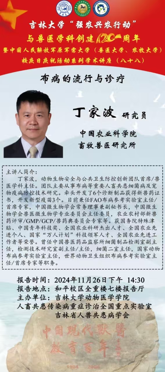 包你发 “强农兴农行动”与兽医学科创建120周年暨中国人民解放军原军需大学(兽医大学、农牧大学)校庆日庆祝活动系列学术讲座(八十八)