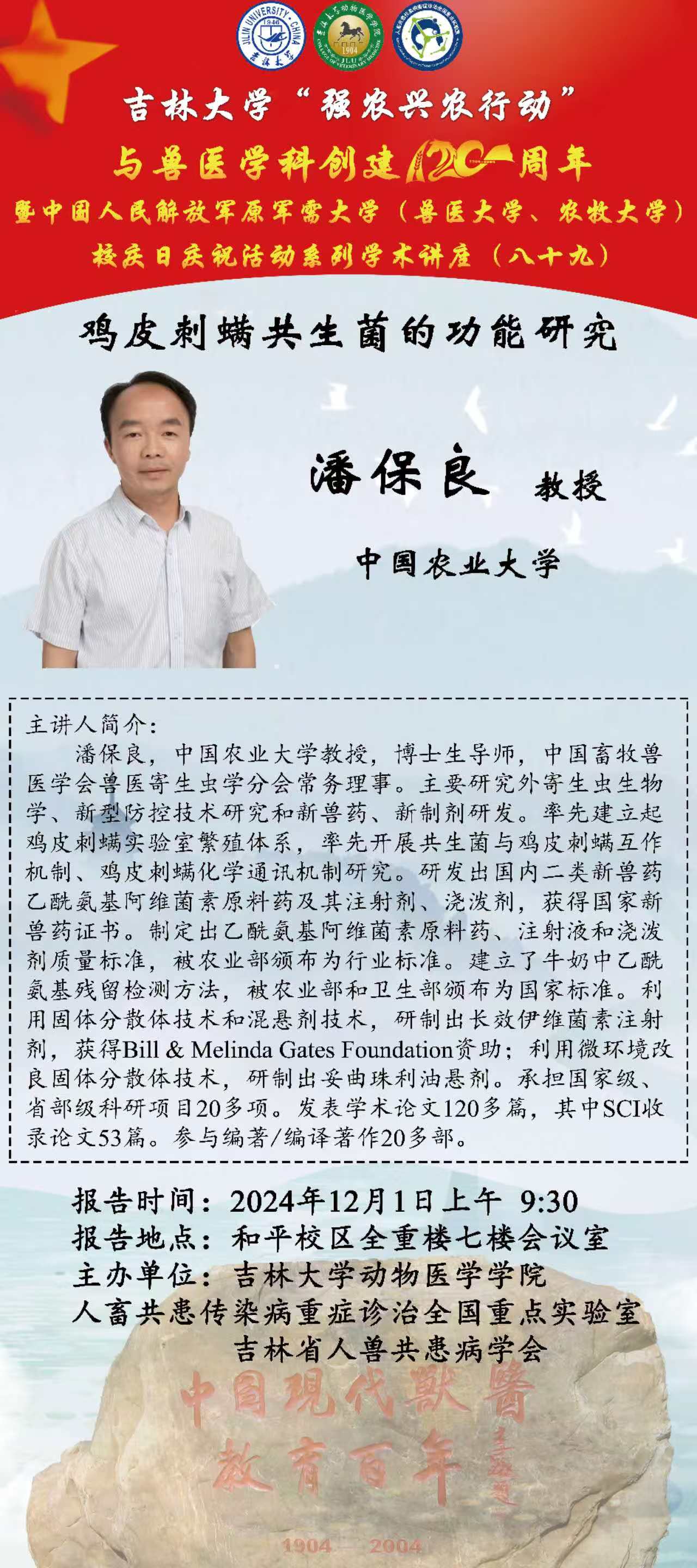 包你发 “强农兴农行动”与兽医学科创建120周年暨中国人民解放军原军需大学(兽医大学、农牧大学)校庆日庆祝活动系列学术讲座(八十九)