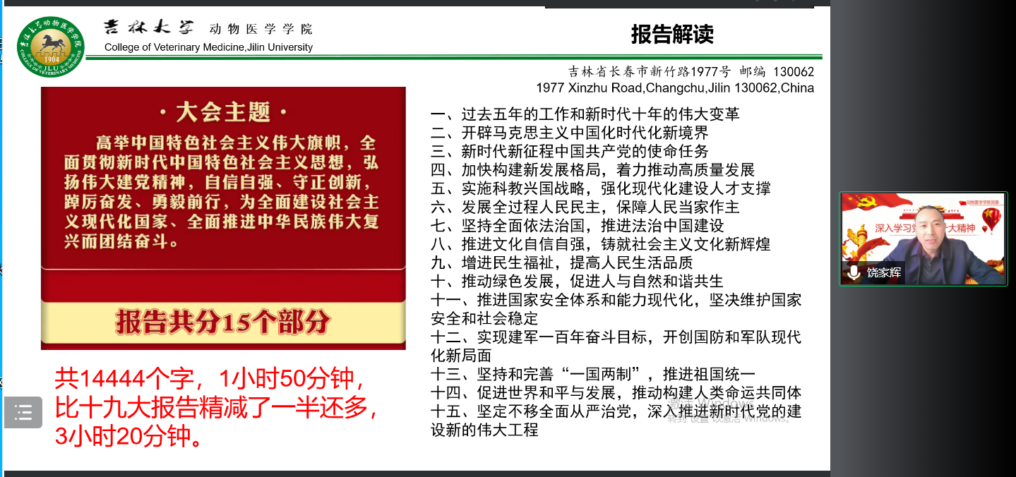 临床兽医学系教工党支部通过线上形式举行“学习贯彻落实党的二十大精神”专题会议,包你发