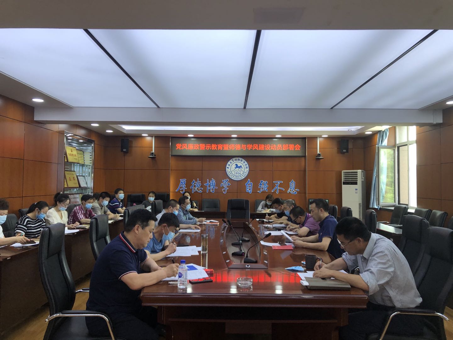 综合楼三楼会议室召开了党风廉政警示教育暨师德与学风建设动员部署会。包你发