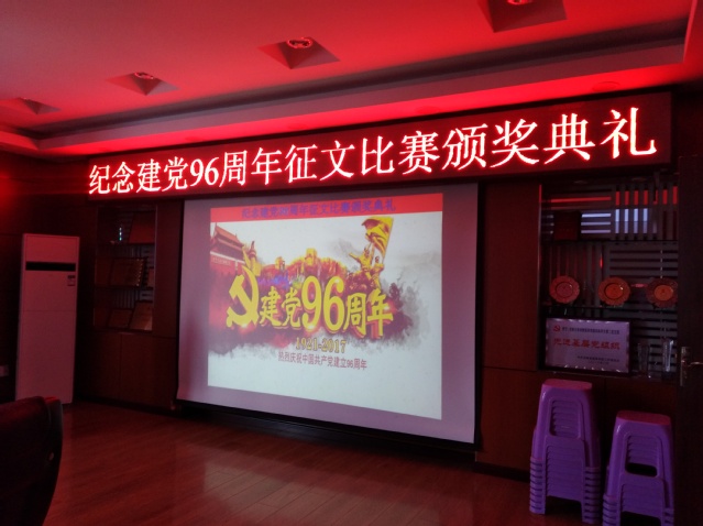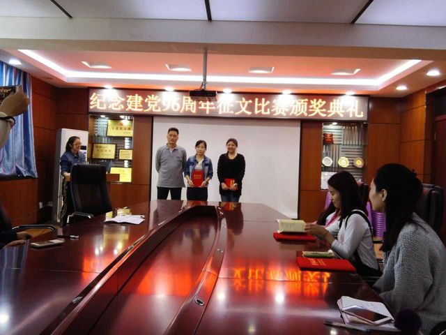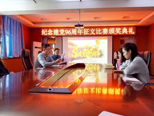 在三楼会议室举行了“庆祝建党96周年”征文比赛颁奖典礼,以对这次征文活动进行总结和表彰。包你发