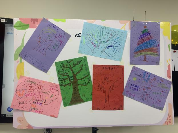 活动的最后伴随着平静且悠扬的音乐,各小组在彩色的卡纸上合作绘画出心目中的《团体树》,上面记录着大家最朴素且最动人的愿望。