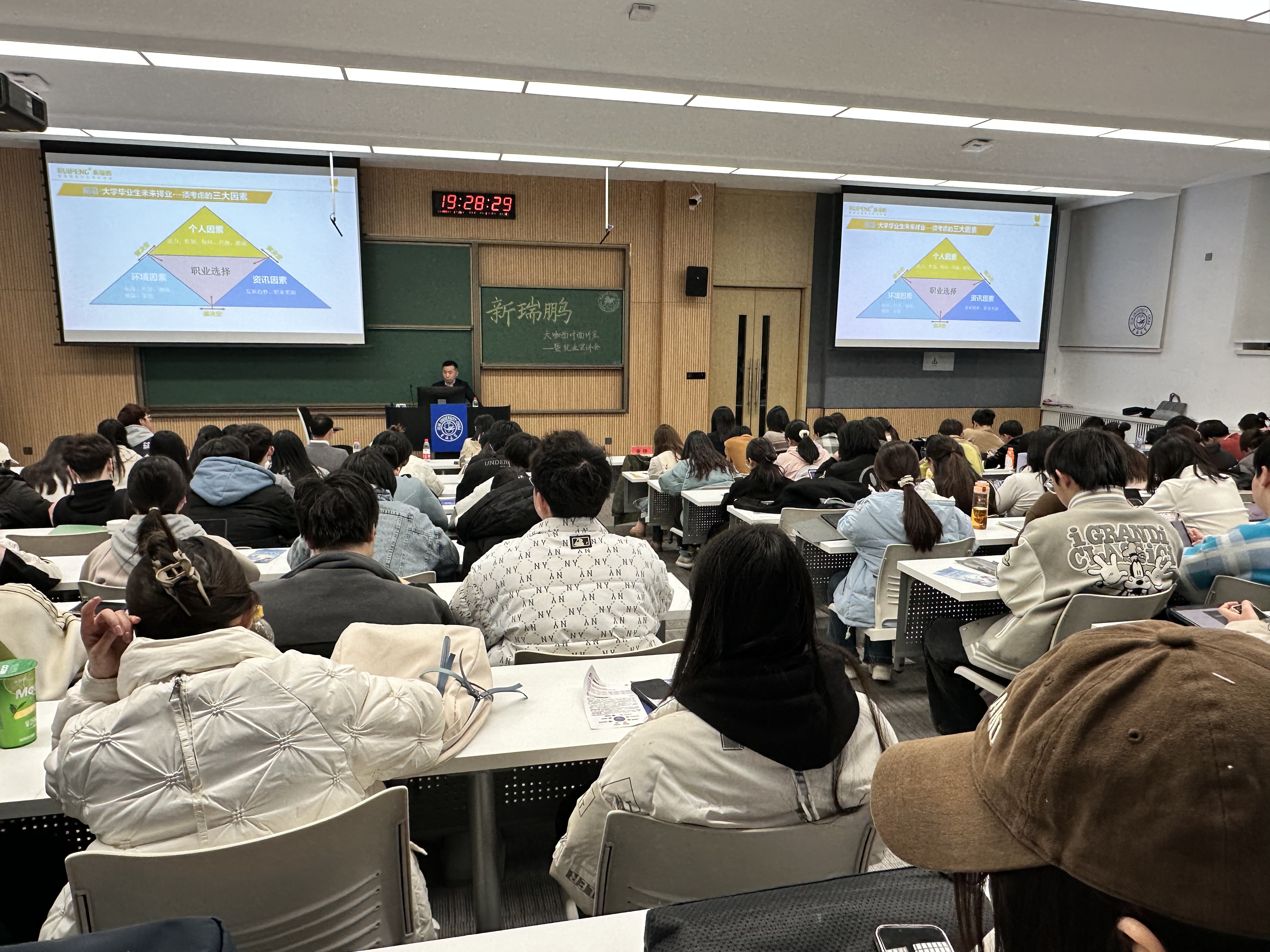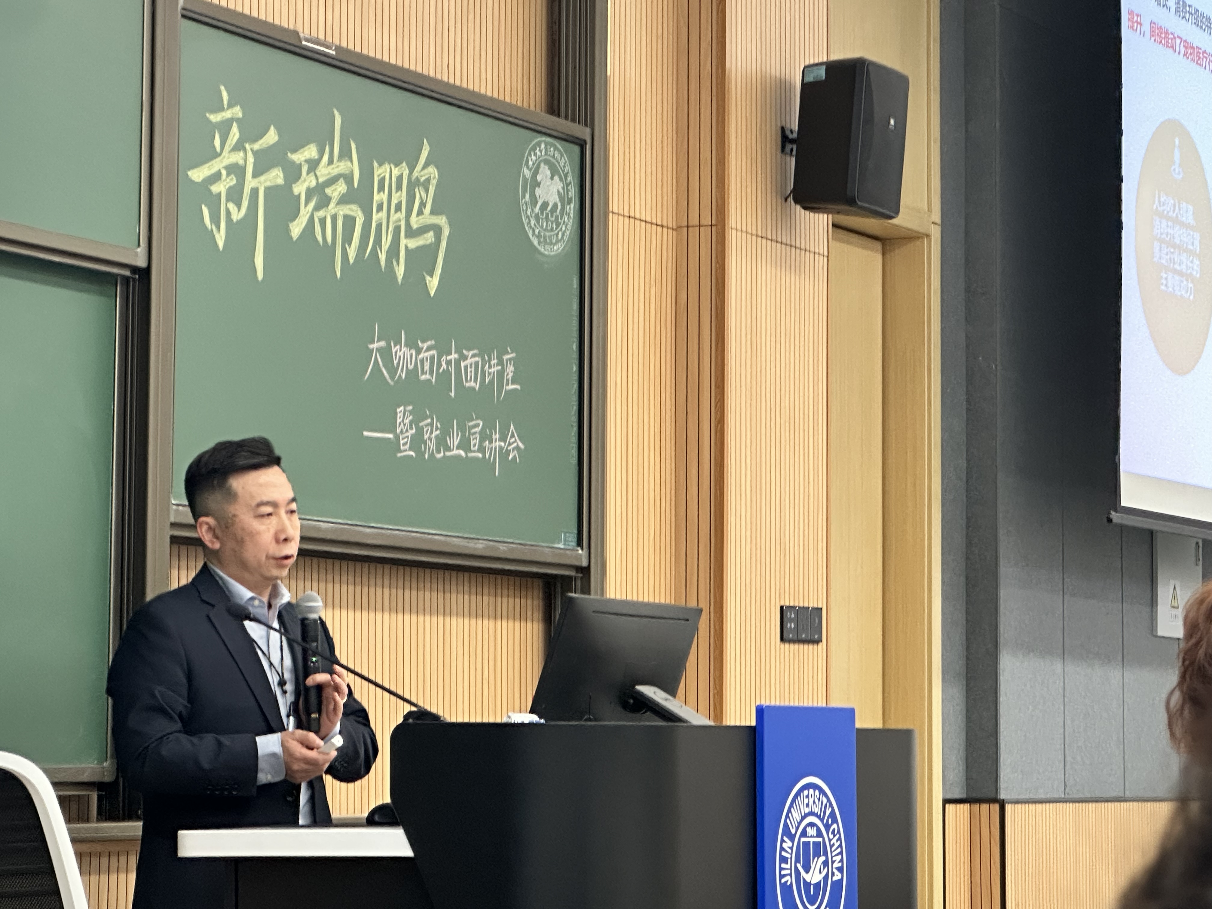 在和平校区科学讲堂100教室举办了“遇见新瑞鹏 遇见新未来”宠物医疗发展专题讲座暨就业招聘宣讲会,活动特邀主讲嘉宾为新瑞鹏集团副总裁董轶,新瑞鹏集团招聘经理李娇、校企合作专业经理宋辉,包你发