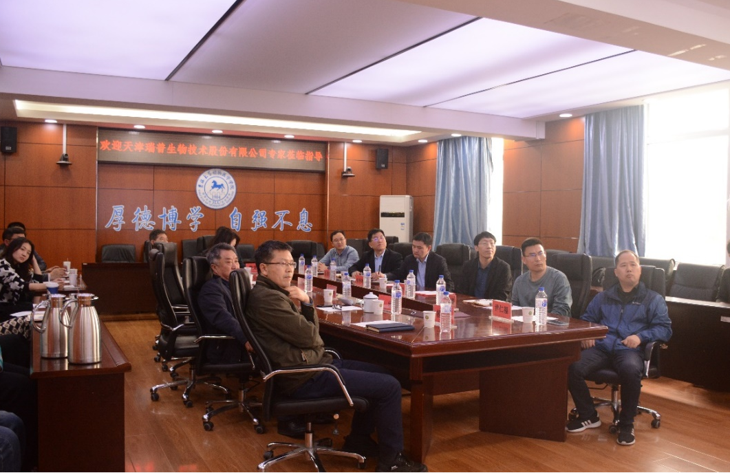 与天津瑞普生物技术股份有限公司合作座谈会在兽医楼三楼会议室举行。天津瑞普生物技术股份有限公司副总裁朱秀同、分公司总经理任培森、瑞普生物制品研究院总工程师杨保收,包你发