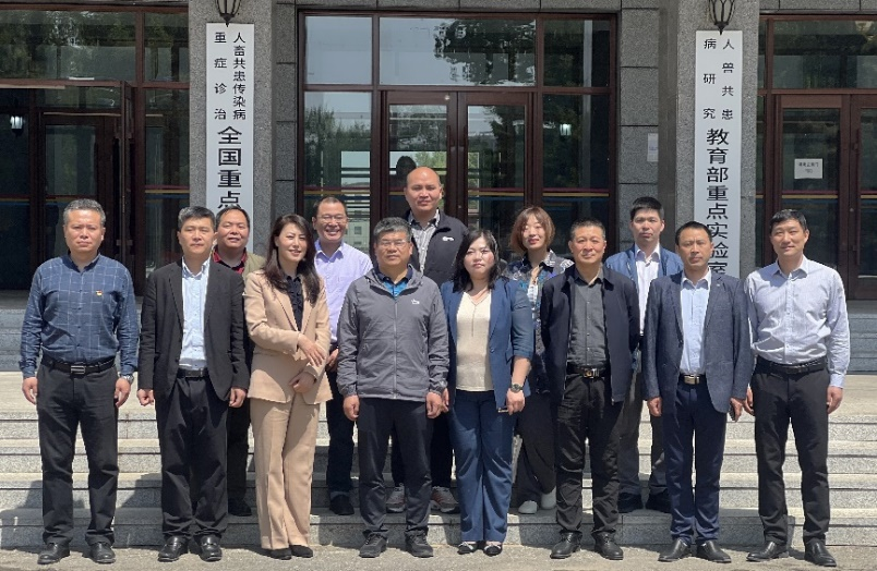 在人畜共患传染病重症诊治全国重点实验室七楼会议室举行了与中国兽医药品监察所及吉林省畜牧业管理局领导专家调研座谈会。中国兽医药品监察所副所长陈先国、菌种室主任杨承槐、细菌一室专家朱良全、菌种室田野老师,吉林省畜牧业管理局兽医药政处处长霍俐、药检所所长陈本能、兽医药政处郝春秀,包你发
