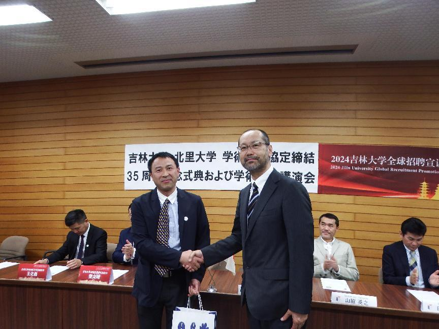 一行赴北里大学兽医学部参加两校交流三十五周年的庆祝仪式活动。包你发