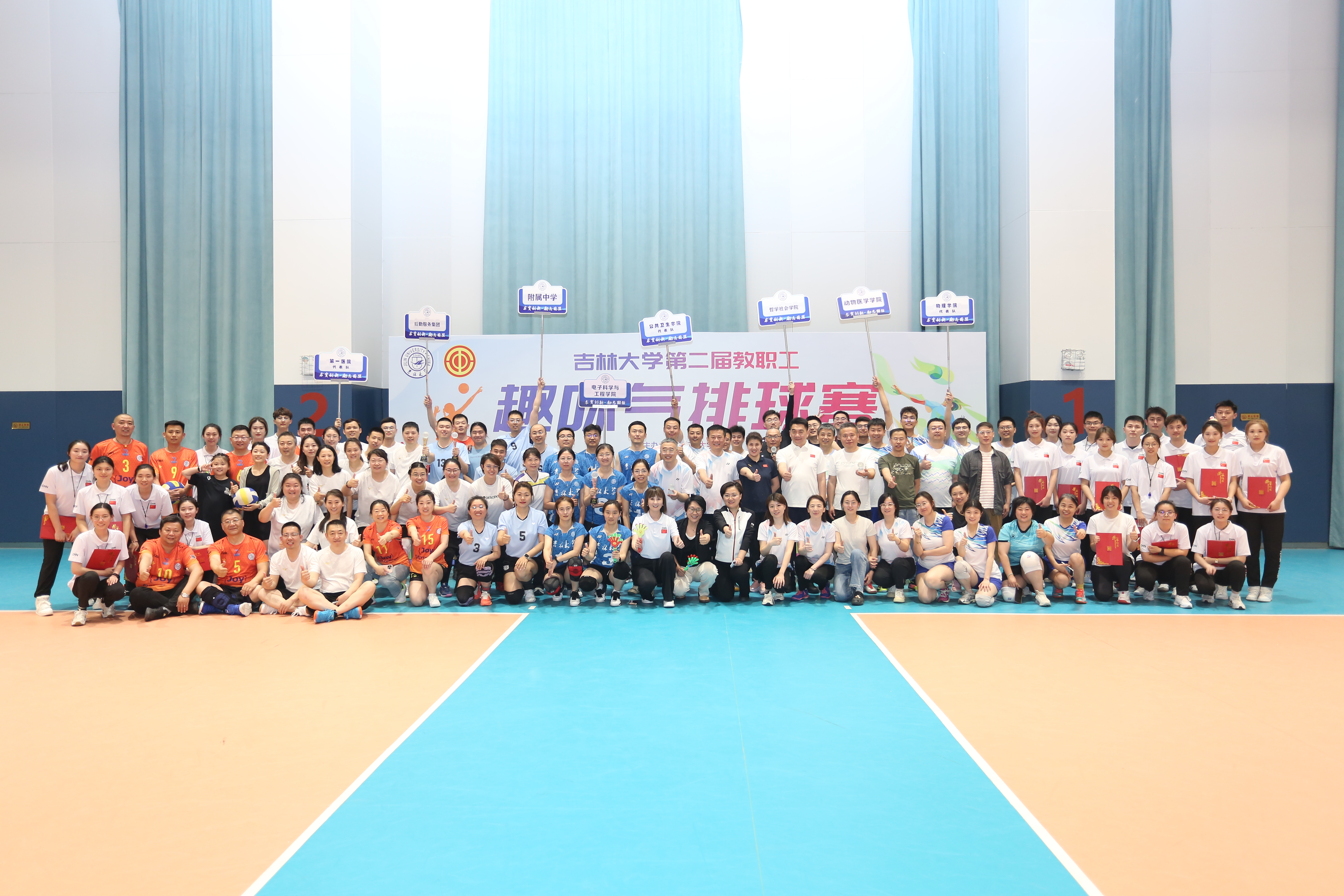 第二届教职工气排球比赛在宋治平体育馆召开。本次比赛旨在增进教职工之间的友谊,提高团队合作精神,同时也为校园文化生活增添了一抹亮色。在众多参赛队伍中,包你发