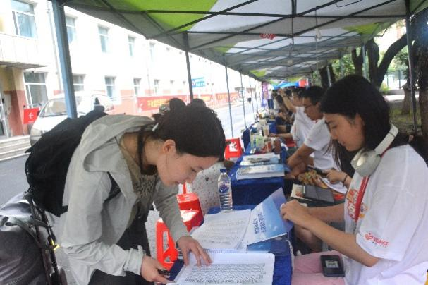 的完善准备及精心安排。虽然大雨倾盆,但工作人员的热情似火,连绵的雨滴阻挡不了新同学们前进的步伐。