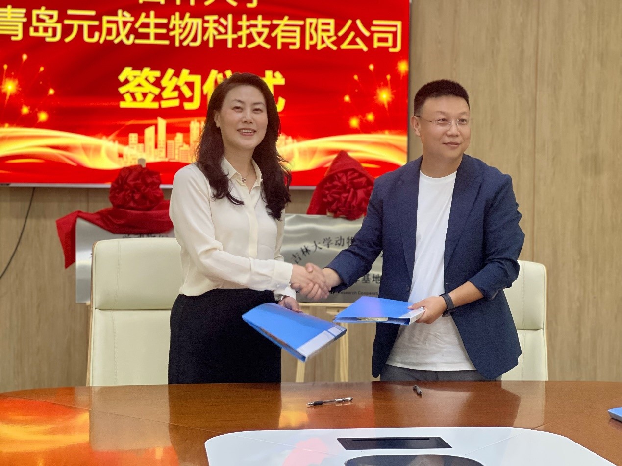 院长李建华教授与青岛元成生物科技有限公司总经理刘元元共同为两基地揭牌,标志着校企合作进入新阶段。