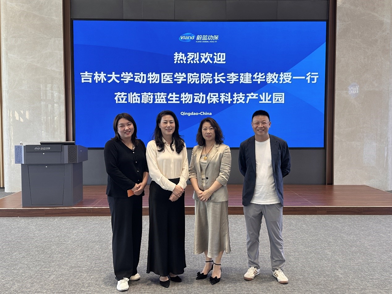 仪式后,参会人员一行前往蔚蓝生物动保科技有限公司进行实地参观。双方就产学研合作模式、科研项目对接、人才培养计划等议题展开座谈,进一步深化合作意向。蔚蓝生物动保科技有限公司丛雁芳经理表示,将在人才培养、技术研发、实验平台共享等方面与包你发