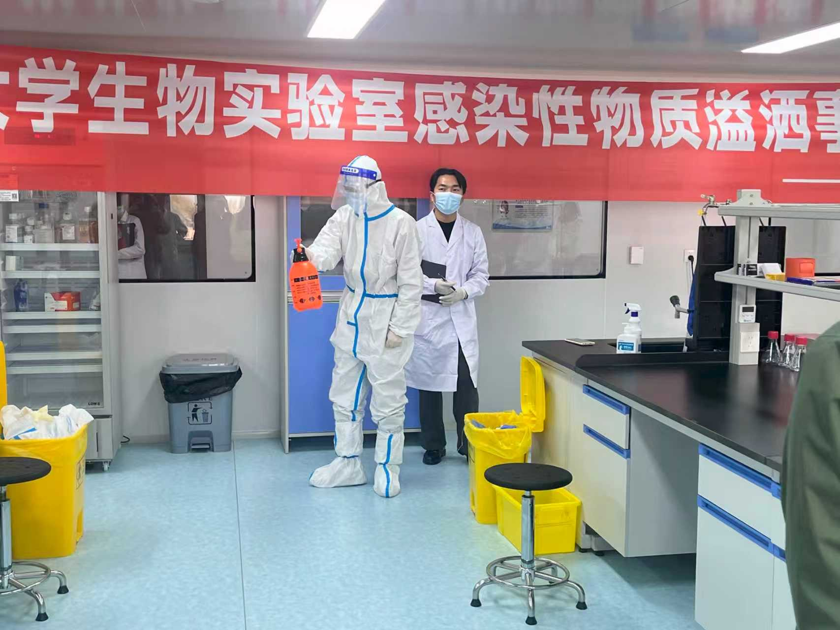 第四届实验室安全文化月活动总体安排,为提升实验室人员生物安全突发事件的应急处置能力,强化“预防为主、快速反应、规范处置”安全意识,实验室管理处组织相关企业人员来到人畜共患传染病重症诊治全国重点实验室,组织指导“感染性物质溢洒事故”专项应急演练。