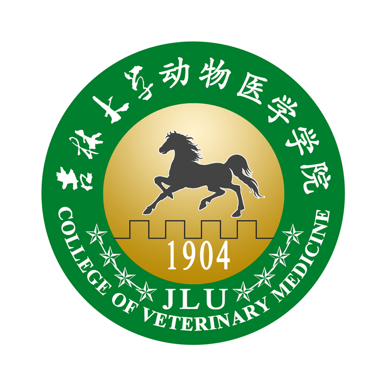 包你发 院徽以马、长城、八颗相连的五角星、“JLU”、“包你发 ”、“college of veterinary medicine”、“1904”等元素组成。